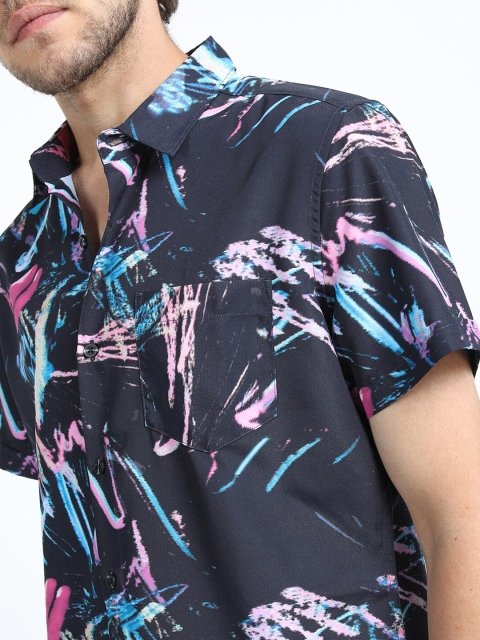 New Men Black Slim Fit Floral Printed Casual Shirt