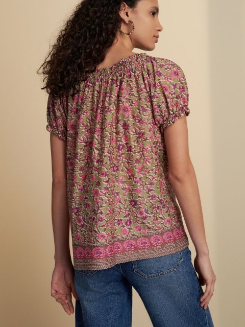 NEXT Floral Print Tie-Up Neck Pure Cotton Top