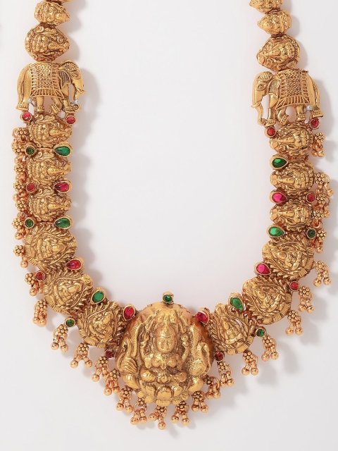 PANASH Gold-Plated Stones-Studded & Beaded Jewellery Set