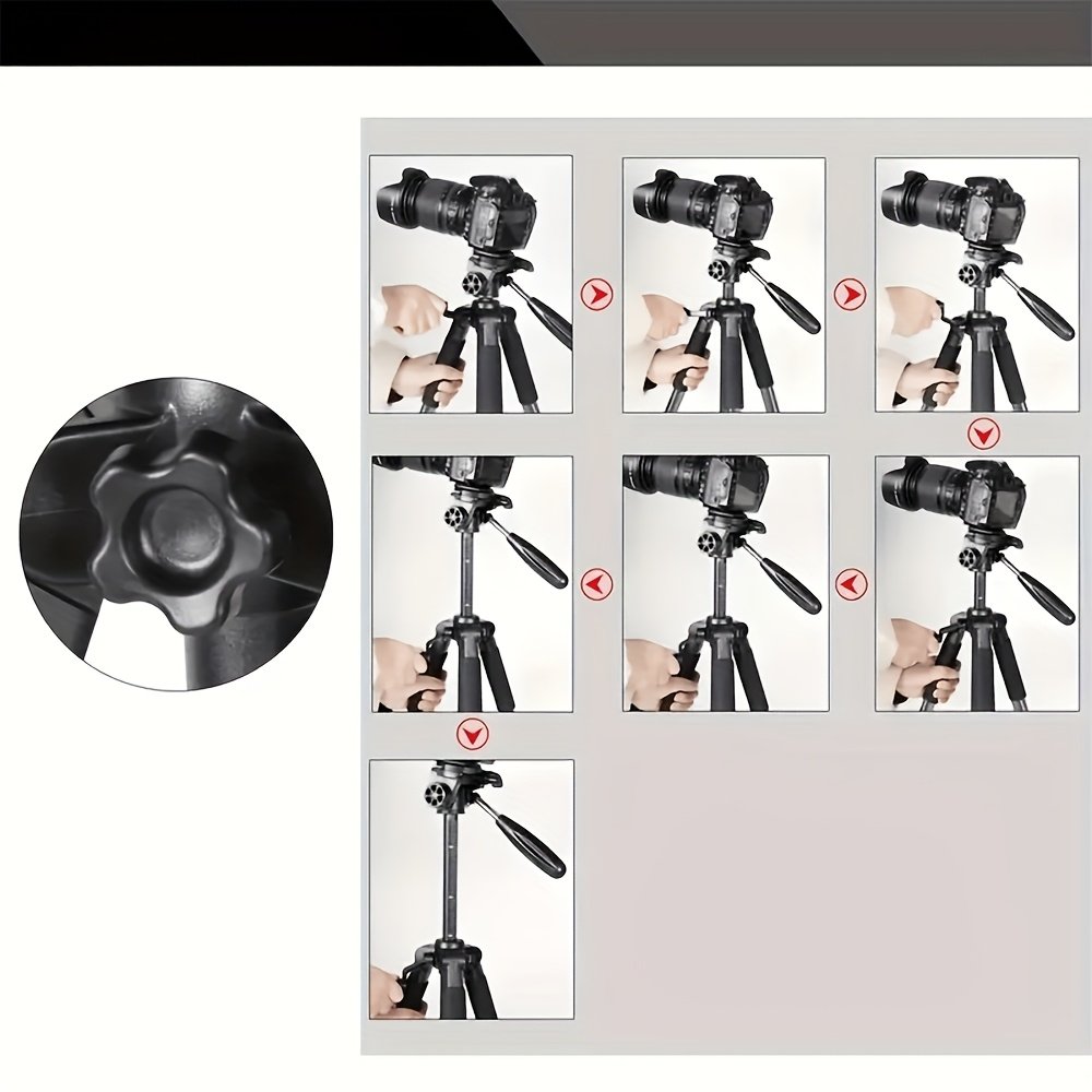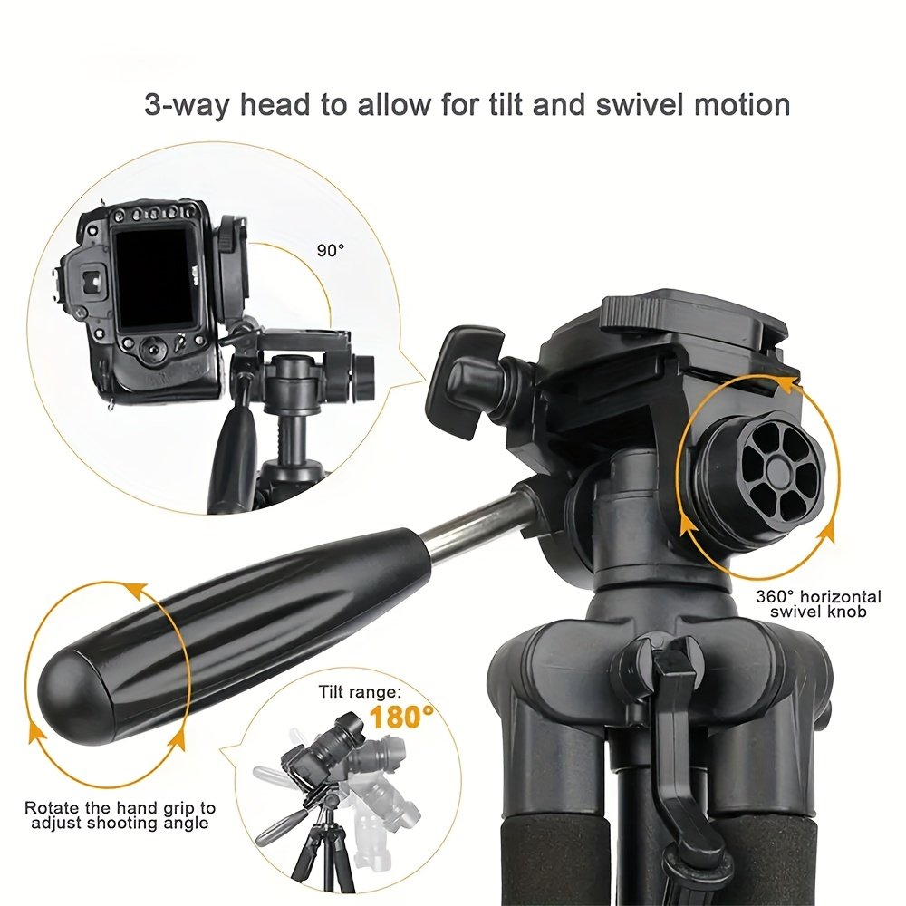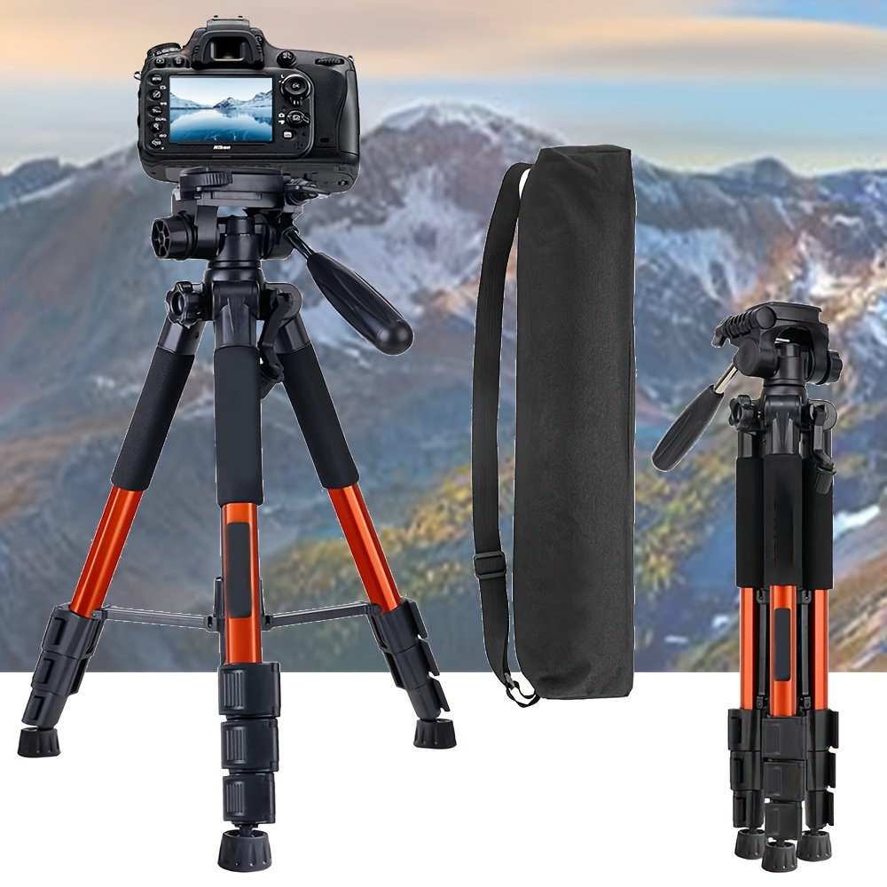 Professional DSLR Camera Tripod Q111, 60-inch Professional Tripod, Aluminum Heavy Duty Camera Stand, 360° Panoramic Head, Digital SLR Tripod for Mobile Phones, Projectors, Webcams, Compatible with Positioning Mirrors - Orange