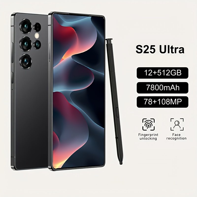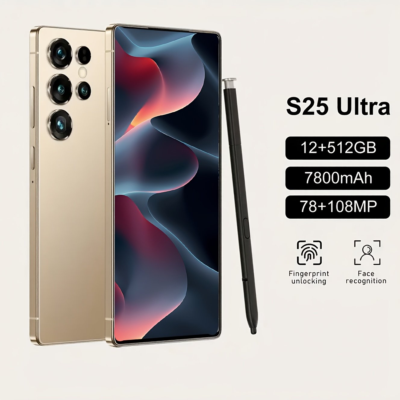 S25 Android 14 Unlocks MAX Smartphone, 16+50MP Camera, 6.75-Inch Large Screen, 12GB+512GB Storage, Built-In Stylus, 6800mAh Battery, Free Phone Case+Protective Film+Card Extractor+Wired Headphones