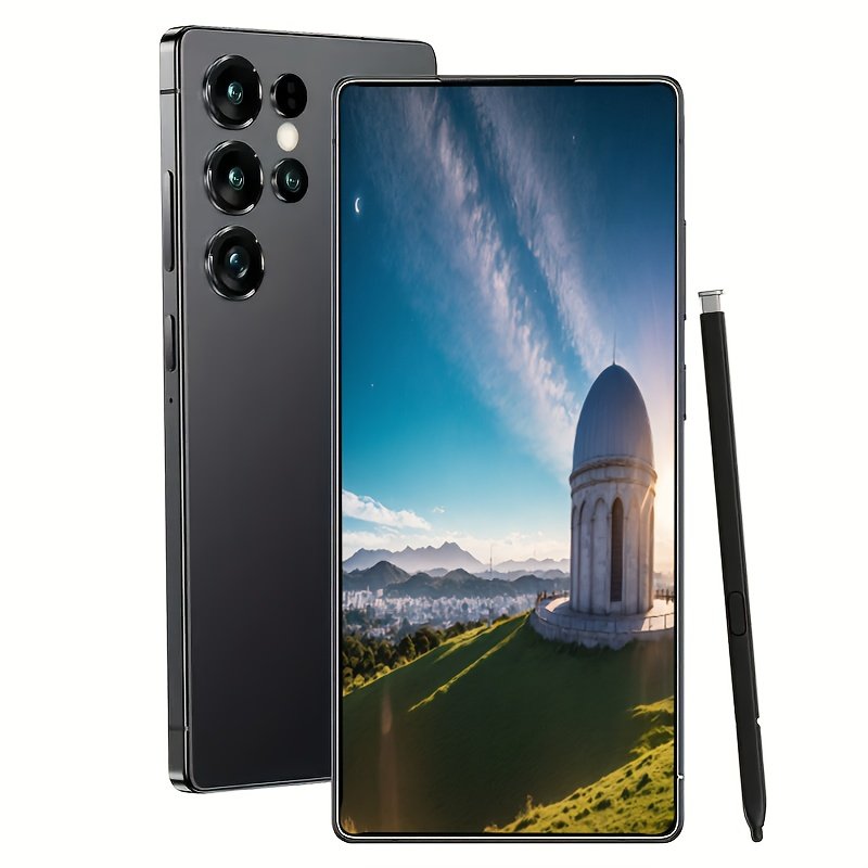 S25 Android 14 Unlocks MAX Smartphone, 16+50MP Camera, 6.75-Inch Large Screen, 12GB+512GB Storage, Built-In Stylus, 6800mAh Battery, Free Phone Case+Protective Film+Card Extractor+Wired Headphones, Tablet, Pad