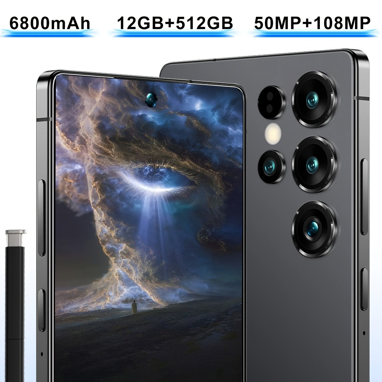 S25 Ultra Unlocked Smartphone - 8GB RAM + 256GB Storage, 17.27cm FHD+ Display, 13MP Front & 50MP Rear Camera, 6800mAh Battery, Dual SIM, GPS, Built-in Stylus, Earphones, Case & Screen Protector Included, Type-C Charging, Ideal Gift