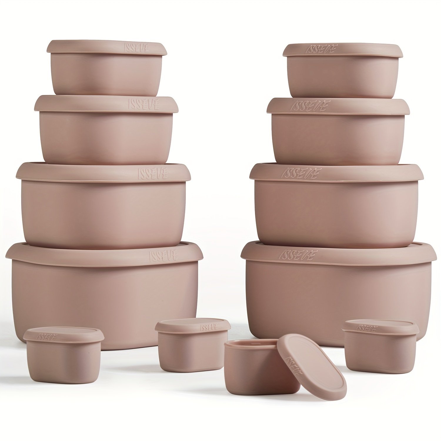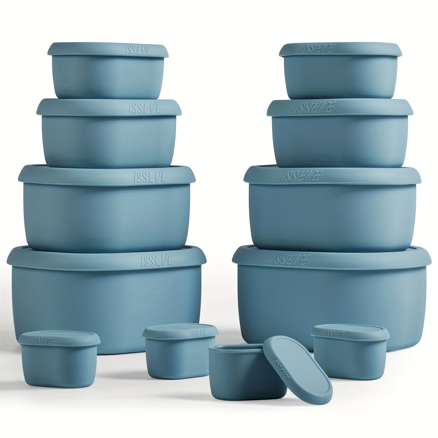 [Silicone Meal Prep Containers] 12Pcs/Set Nesting Silicone Food Storage Containers - BPA Free, Airtight, Reusable Meal Prep - Freezer Dishwasher Safe 33.8oz, 20oz, 10oz, 6.7oz, 1.3oz