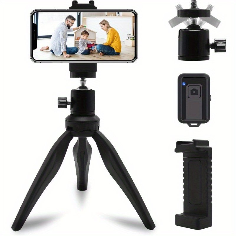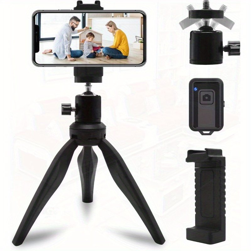 Small Tripod for iPhone Lightweight Desktop Mini Tripod for Phone Compatible with Cellphone Camera DSLR with Universal Phone Mount Holder and Wireless Remote Black