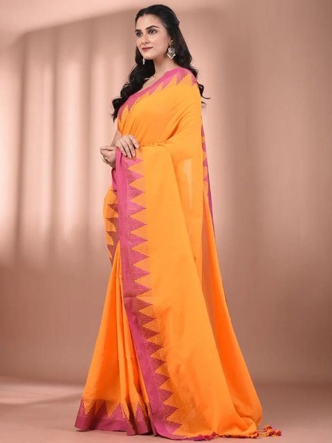 - Solid saree with woven design border