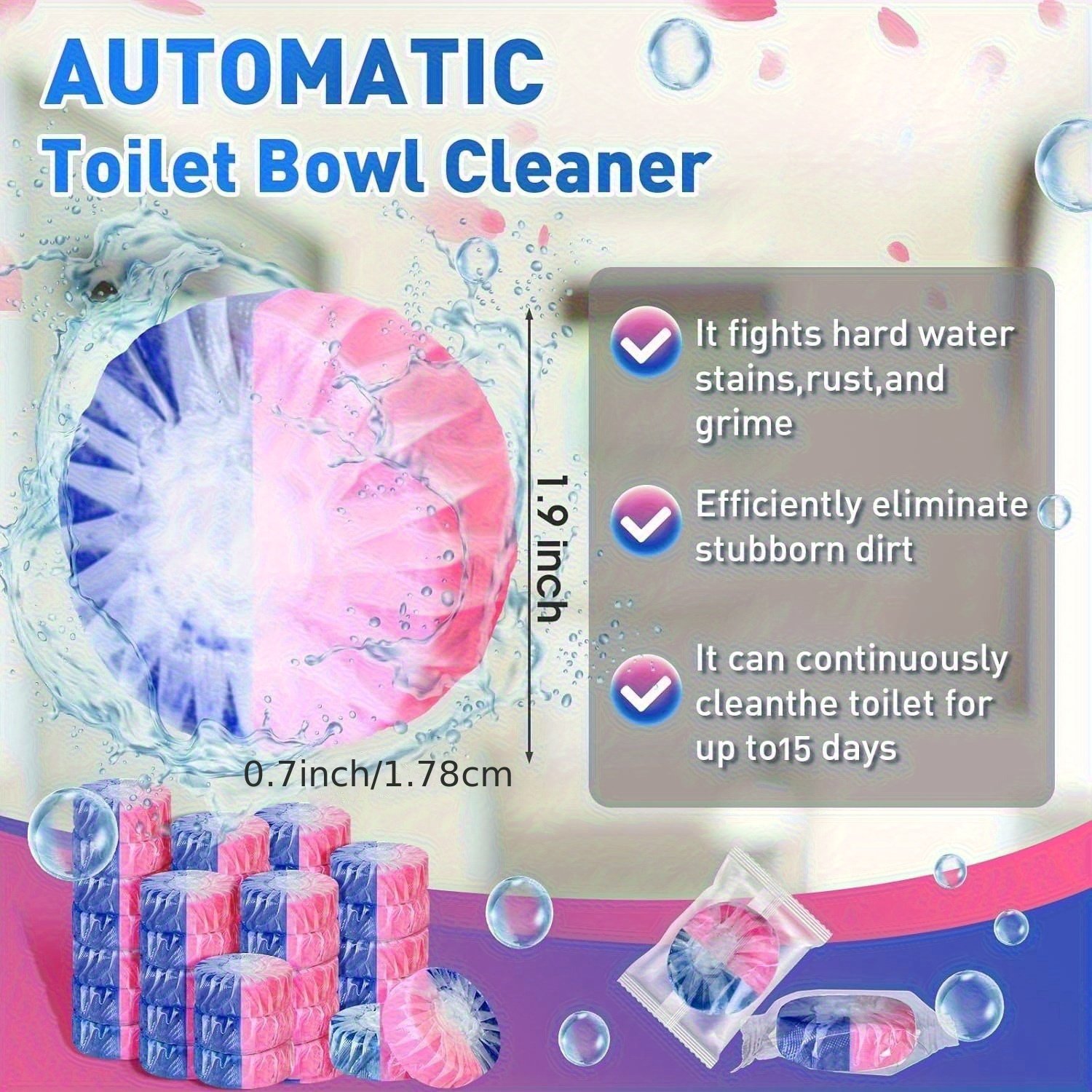 [Strong Cleaner] Strong Automatic Toilet Bowl Cleaner Tablets | Bathroom Toilet Tank Cleaner, Blue & Pink Clean Bubbles, Mild Fresh Pine Scent