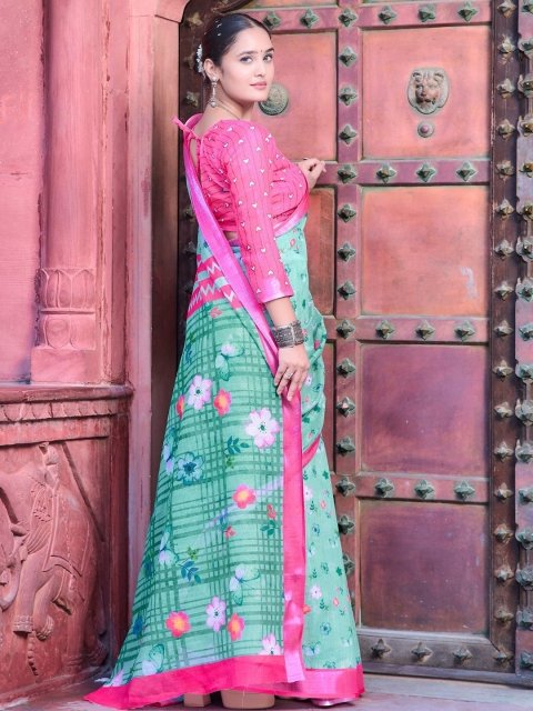 Suha Womens Fashion Ethnic Pure Cotton Sea Green Color Saree
