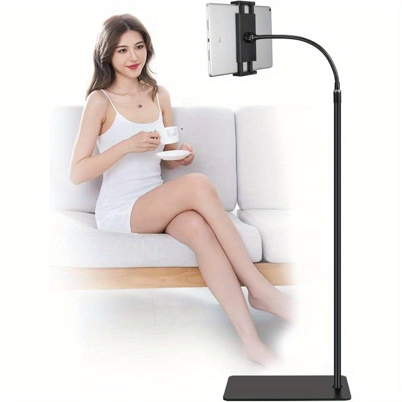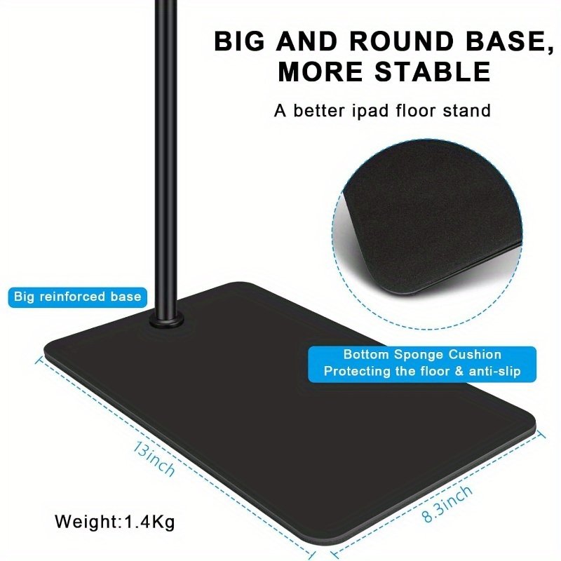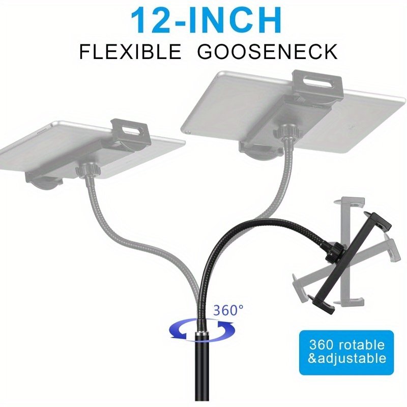 Tablet Floor Stand with Double Base 360degree Rotatable Metal Tablet Holder with Flexible Gooseneck Holder Long Arm for iPad Mini Air Pro, All Cell Phones iPhone Tablets 4.512. 9inch