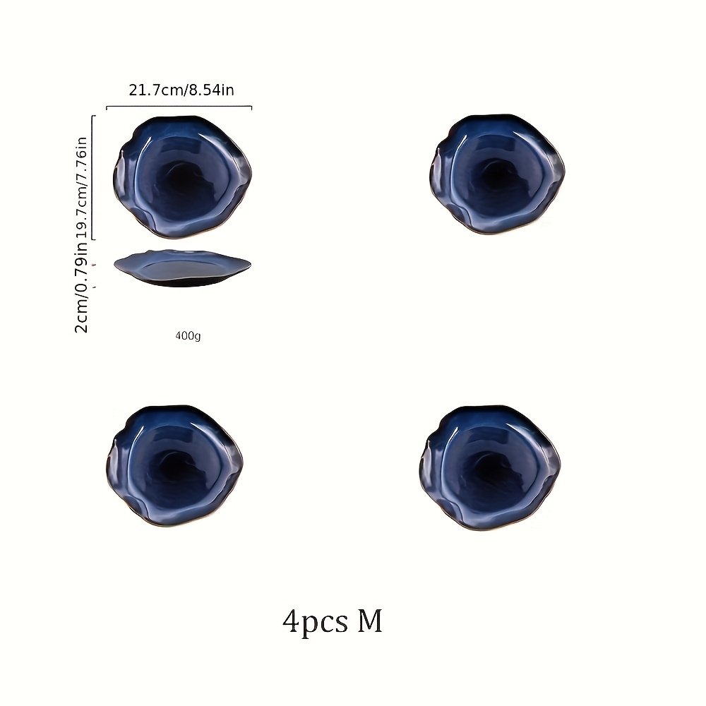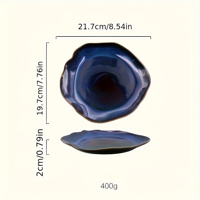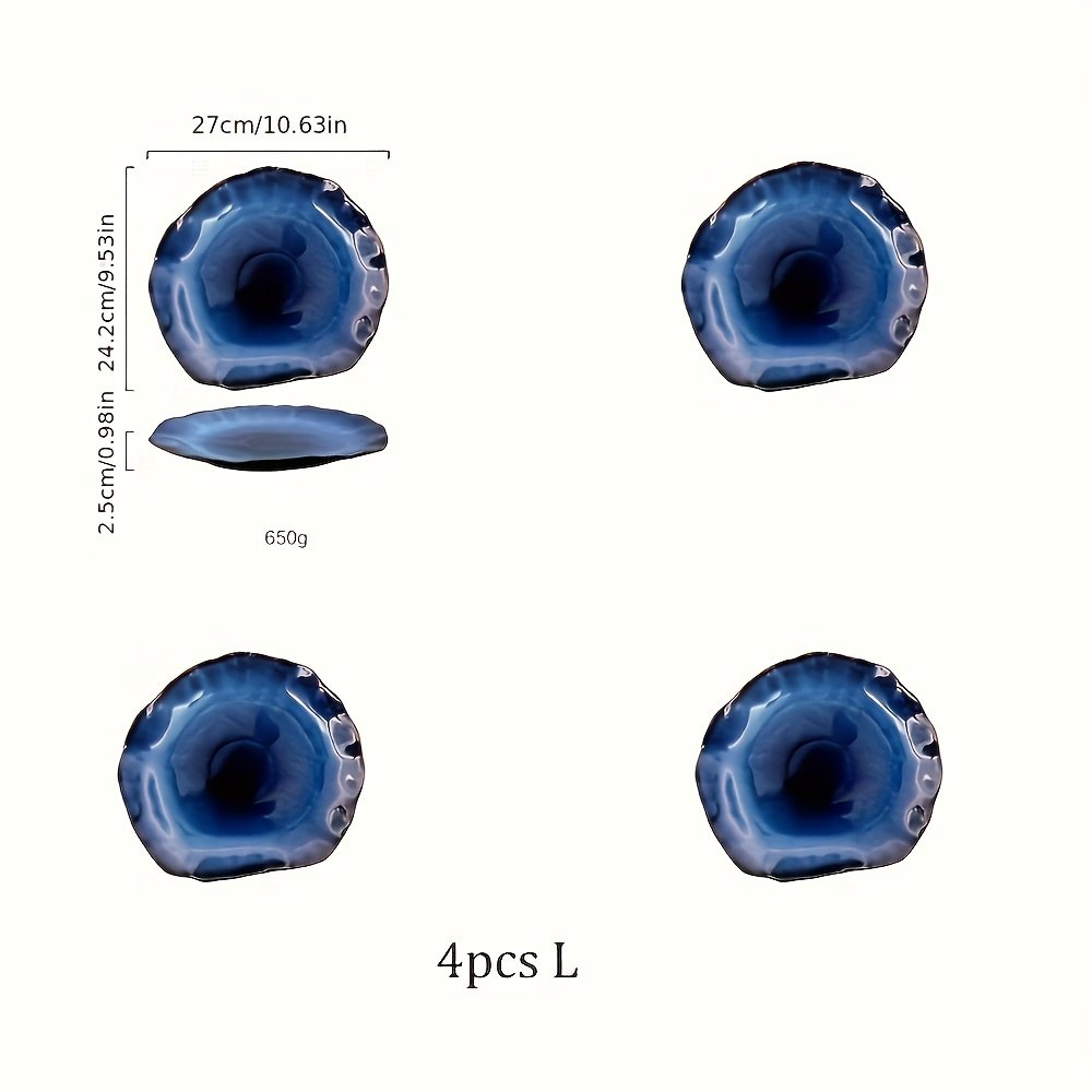 TAUFIKT 1/4pcs Midnight Galaxy Flambe Glaze Ceramic Plates Set - Starry Sky Irregular Dinnerware for Steak/Seafood, Rustic & Modern Tableware for Home Restaurants & Holiday Feasts - for Family Gatherings & Chef-Inspired Dining