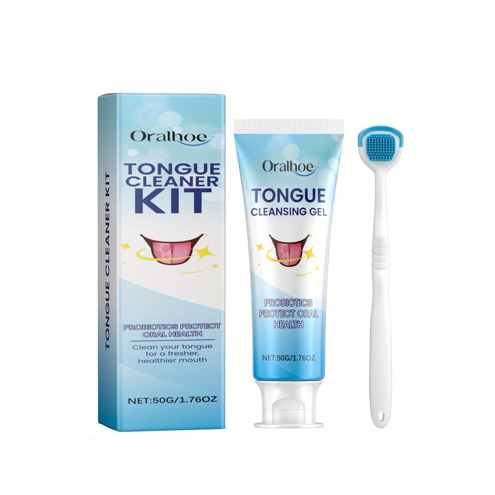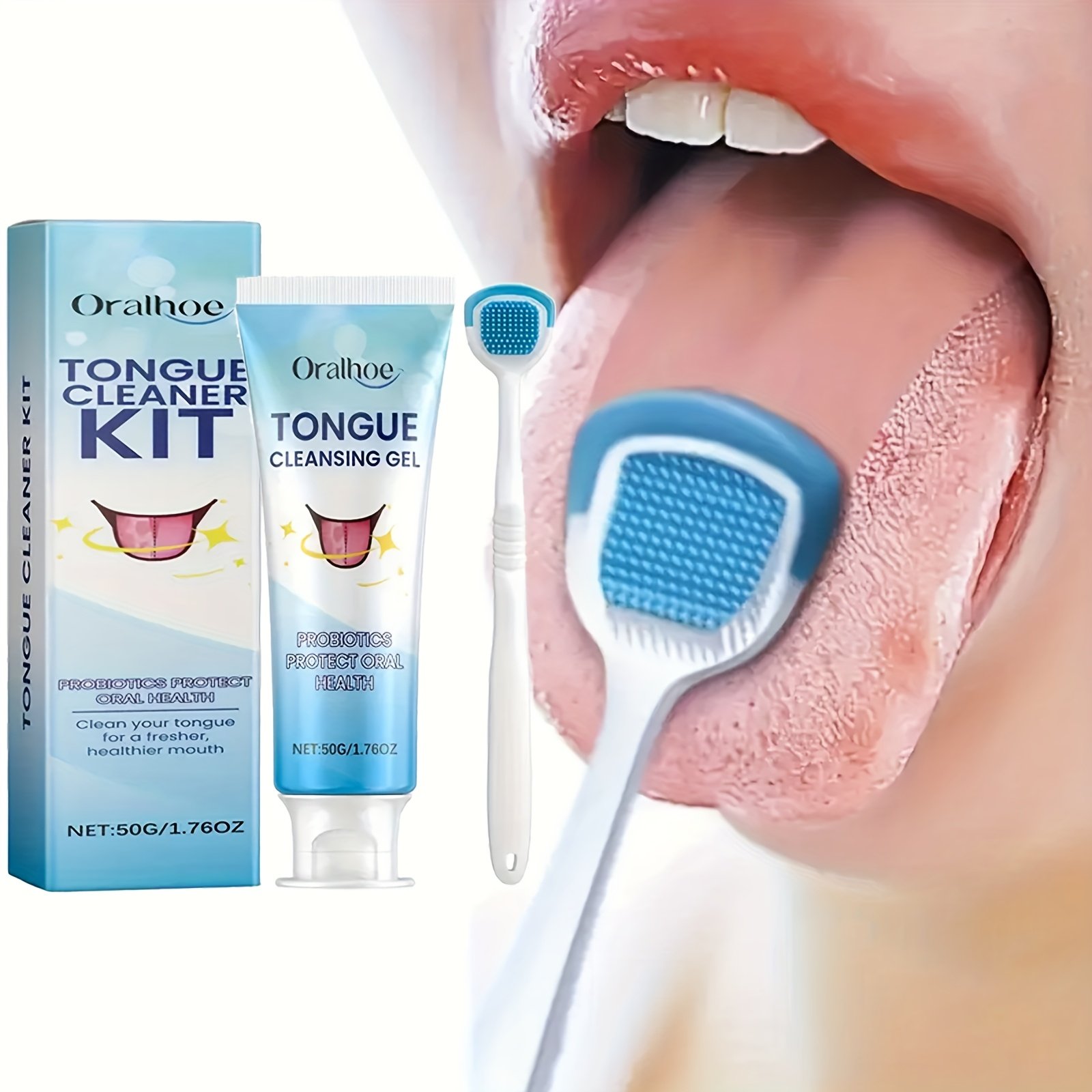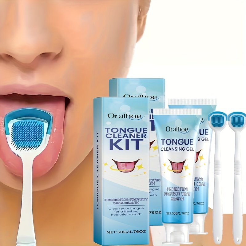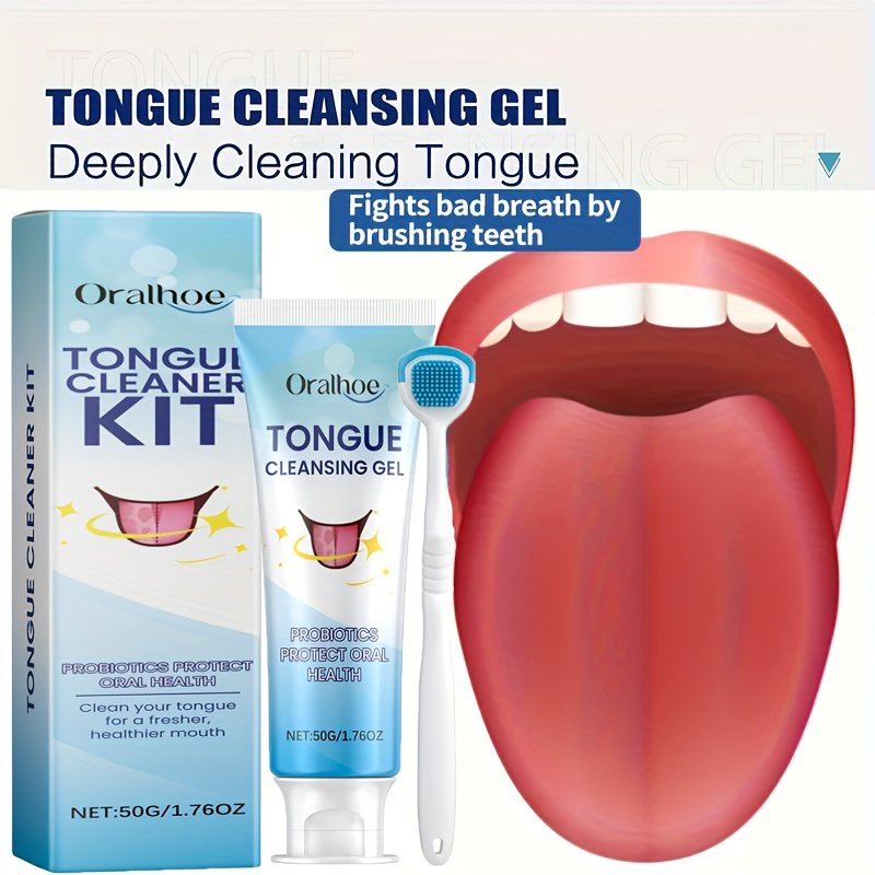 Tongue Cleaning Kit Set, Includes 50g Probiotic Cleansing Gel and 1 Tongue Brush, Cleans Tongue Surface, Keeps Mouth Fresh, Suitable for Daily Post-Meal Oral Care, Mother'S Day Gift for Women