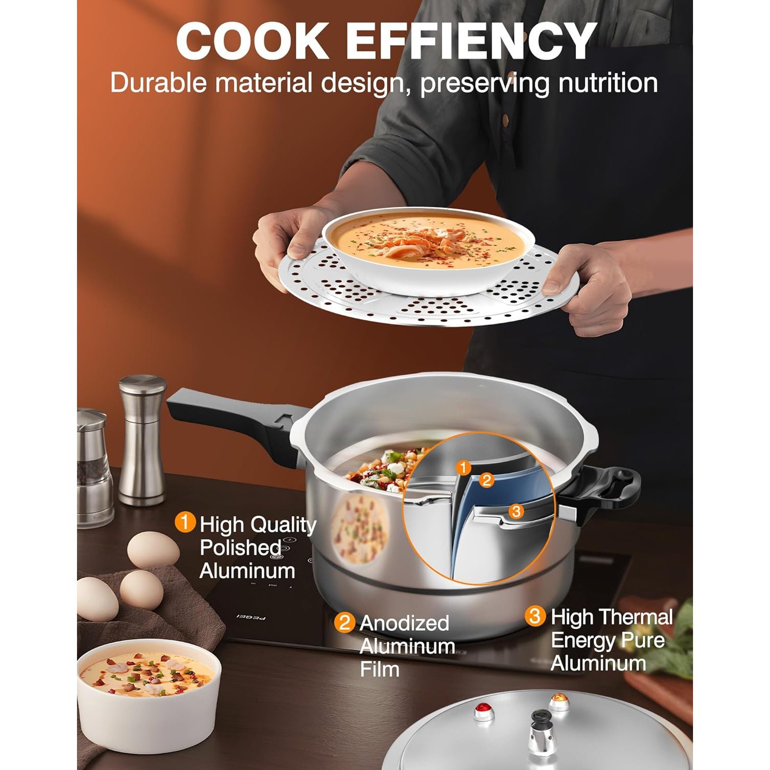WantJoin 10Qt Aluminum Pressure Cooker with Release Valve, Multiple Safety Devices, Gas & Induction Compatible, Canner Rack Included