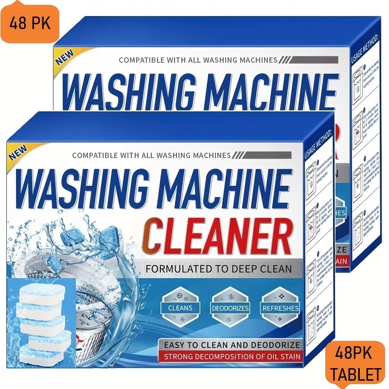 Washing Machine Cleaner Descaler Deep Cleaning Tablets - 20/24/48pcs - for HE Front Loader & Top Load Washer,, Clean Inside Drum And Laundry Tub Seal - 12 Month Supply