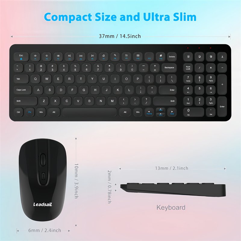 [Wireless LeadsaiL Combo] Wireless Keyboard and Mouse Combo – Compact and Silent LeadsaiL Set for Windows Laptop, Desktop, PC