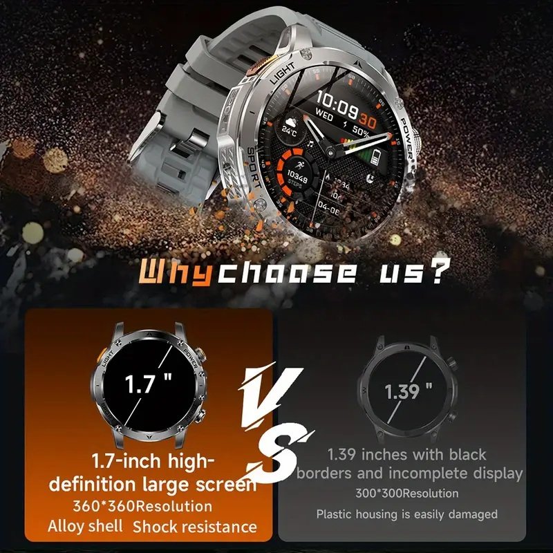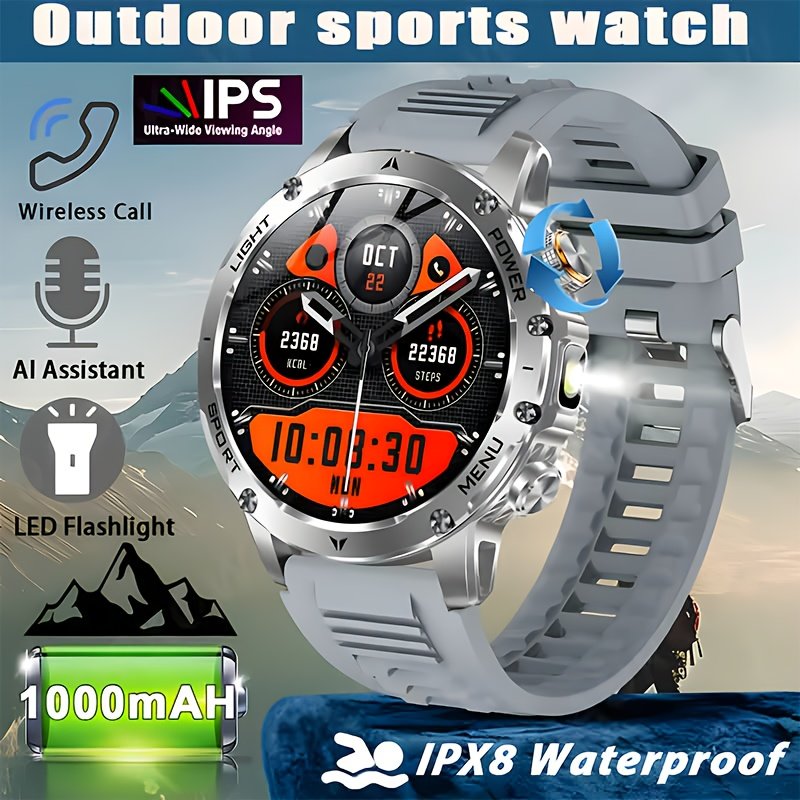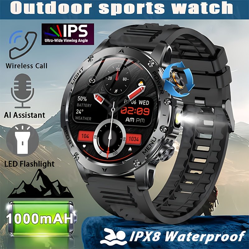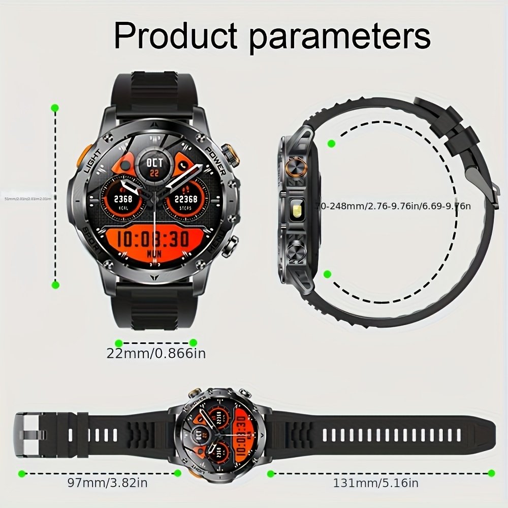 YAOCX Men High-quality Outdoor Sports Multi-function Smart Watch, AMOLED High-definition Resolution Screen, Fitness Companion, Rugged And Durable, LED Flashlight, 1000mAh Large Battery Long Battery Life, 100+ Sports Mode, Step Count, Calories, Message Rem