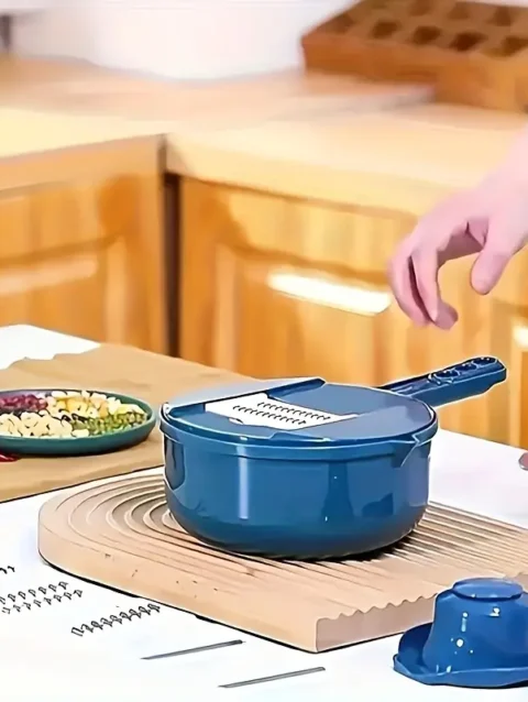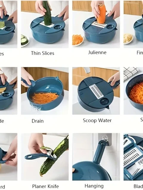 Multifunctional 12 in 1 Vegetable Chopper, Food Slicer and Spiralizer with Container – Manual Handheld Kitchen Gadget for Chopping, Slicing, Dicing & Spiralizing Vegetables